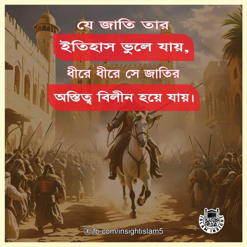 আজ আমরা আসলেই আমাদের অস্তিত্বকে হারাতে বসেছি। তার কারণ হচ্ছে আমরা আমাদের ইতিহাস সম্পর্কে সম্পূর্ণ গাফেল (উদাসীন)। আমরা সেই ইতিহাস জানি না, যা আমাদের পূর্বসূরিগণ সংরক্ষণ করে গিয়েছেন। তাই জানার আগ্রহ থেকে কখনো নিজেকে প্রশ্নও করি না যে, এই গৌরবময় ইতিহাস আমরা কিভাবে অর্জন করেছিলাম? আর কি কারণেই বা তা হারালাম। এমন কি ছিল যার ফলে আমাদের উত্থান হয়েছিলো? আর এমন কি হয়েছিল, যার ফলে আমাদের পতন হয়েছিল? চলবে…
